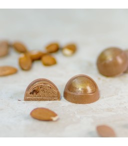 Mliječna čokolada punjena pastom sa okusom čokolade i keksa, zlatni posip.